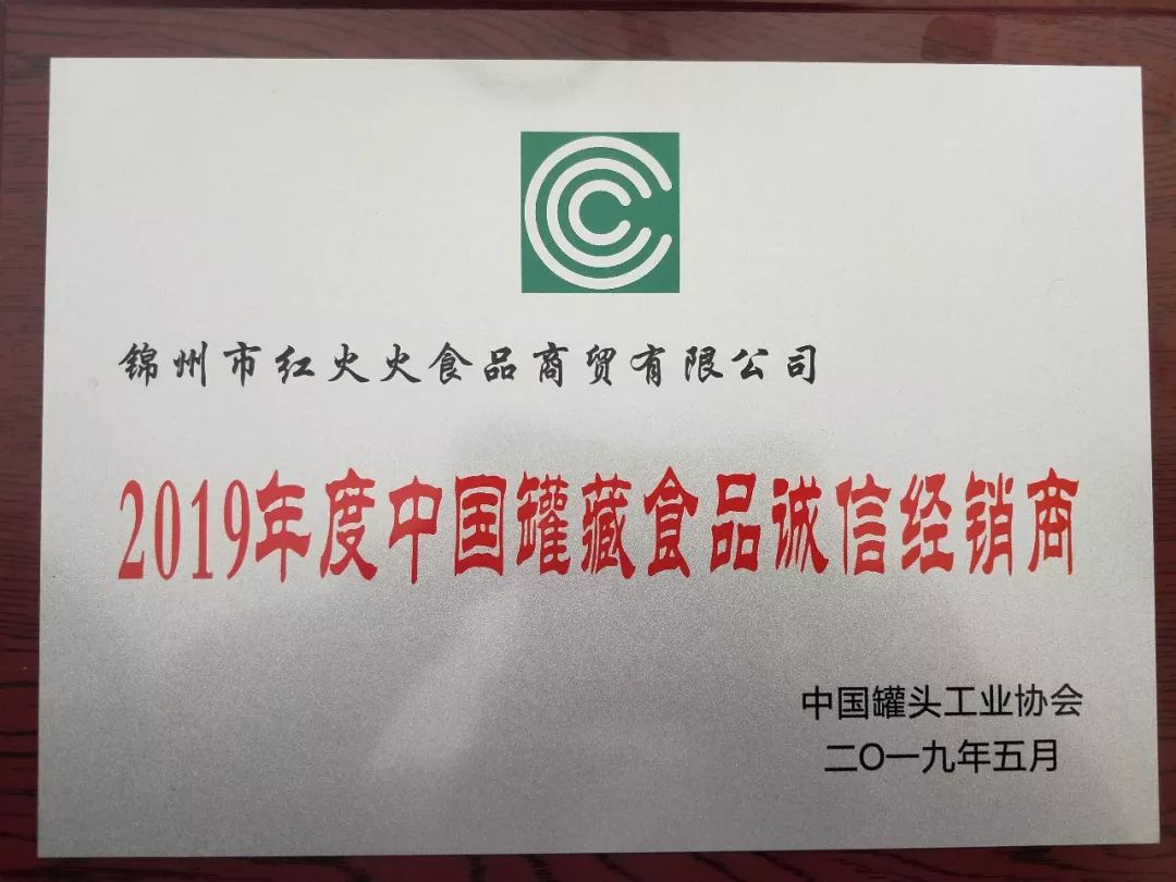 我公司經銷商錦州紅火火商貿有限公司榮獲“2019年度中國罐藏食品誠信經銷商”殊榮。